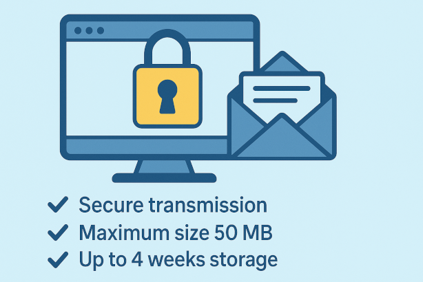 Files and messages are automatically deleted after 4 weeks — permanently and irreversibly.