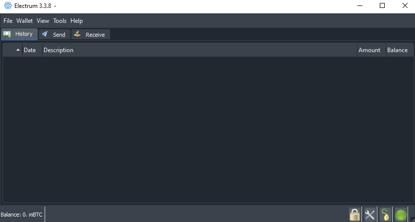 Screenshot: Electrum Bitcoin Wallet – Selbstverwahrung
